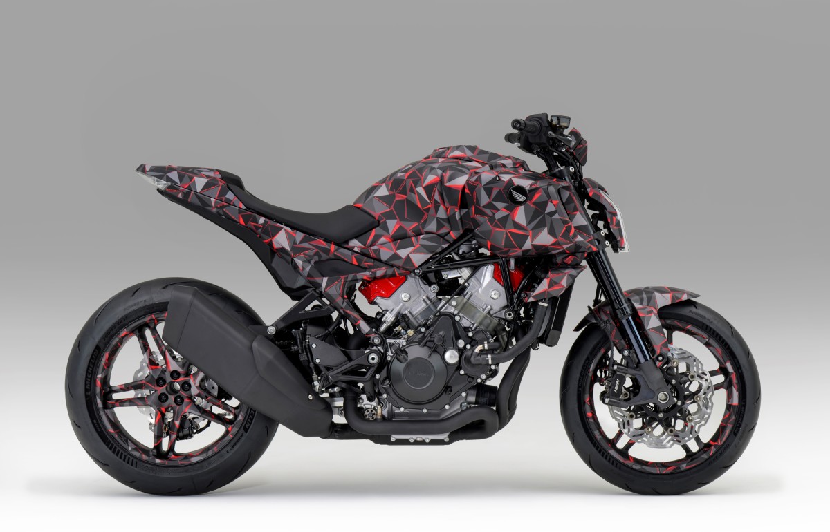 At last year’s EICMA, the annual Milan Motorcycle Show, Honda surprised us all with their latest innovation — a modern 75-degree V3 engine, equipped with forced induction. The engine was presented mounted within a steel trellis frame with an inverted fork up front, single-sided swingarm at the rear, and 17-inch alloy wheels shod with Pirelli tyres, all of which signalled sporty intentions for this platform. This year, the Japanese manufacturer has taken things a step further by presenting the camouflaged V3R 900 E-Compressor Prototype, indicating that a production version is closer than we initially thought.